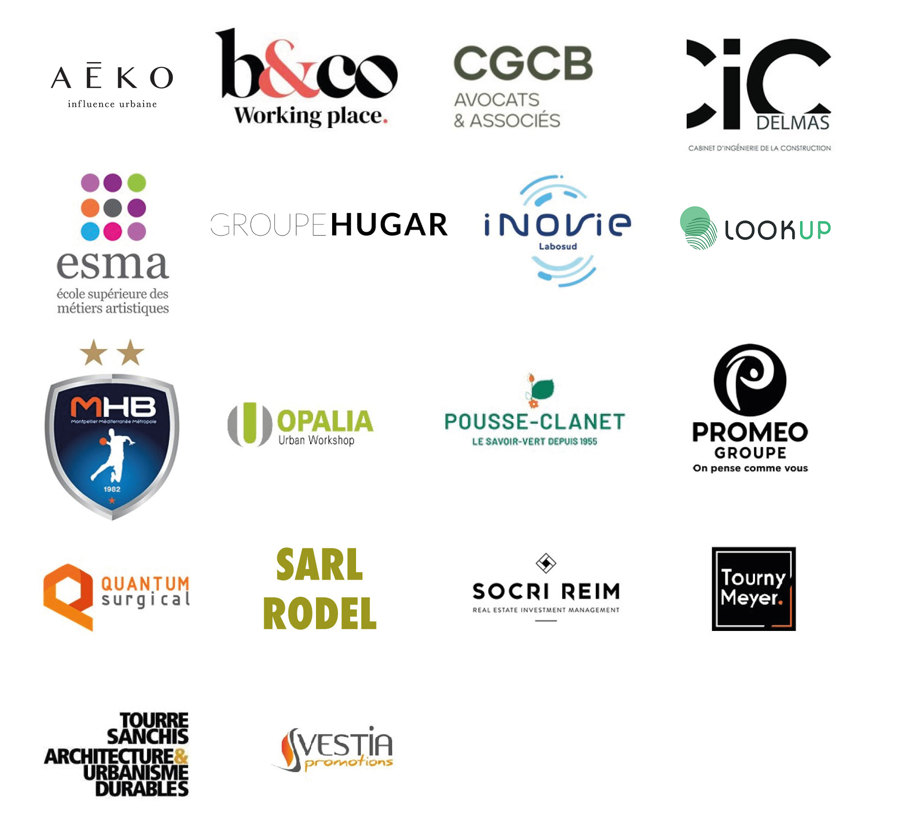 AEKO, Bureaux and co, CGCB Avocats, CIC Delmas, ESMA, Hugar, Inovie, SARL Rodel, Montpellier Handball, OPALIA, Pousse-Clanet Espaces Verts, Proméo, Quantum Surgical, Socri-Reim, Tourny Entreprise SAS, Tourre Sanchis, Vestia.